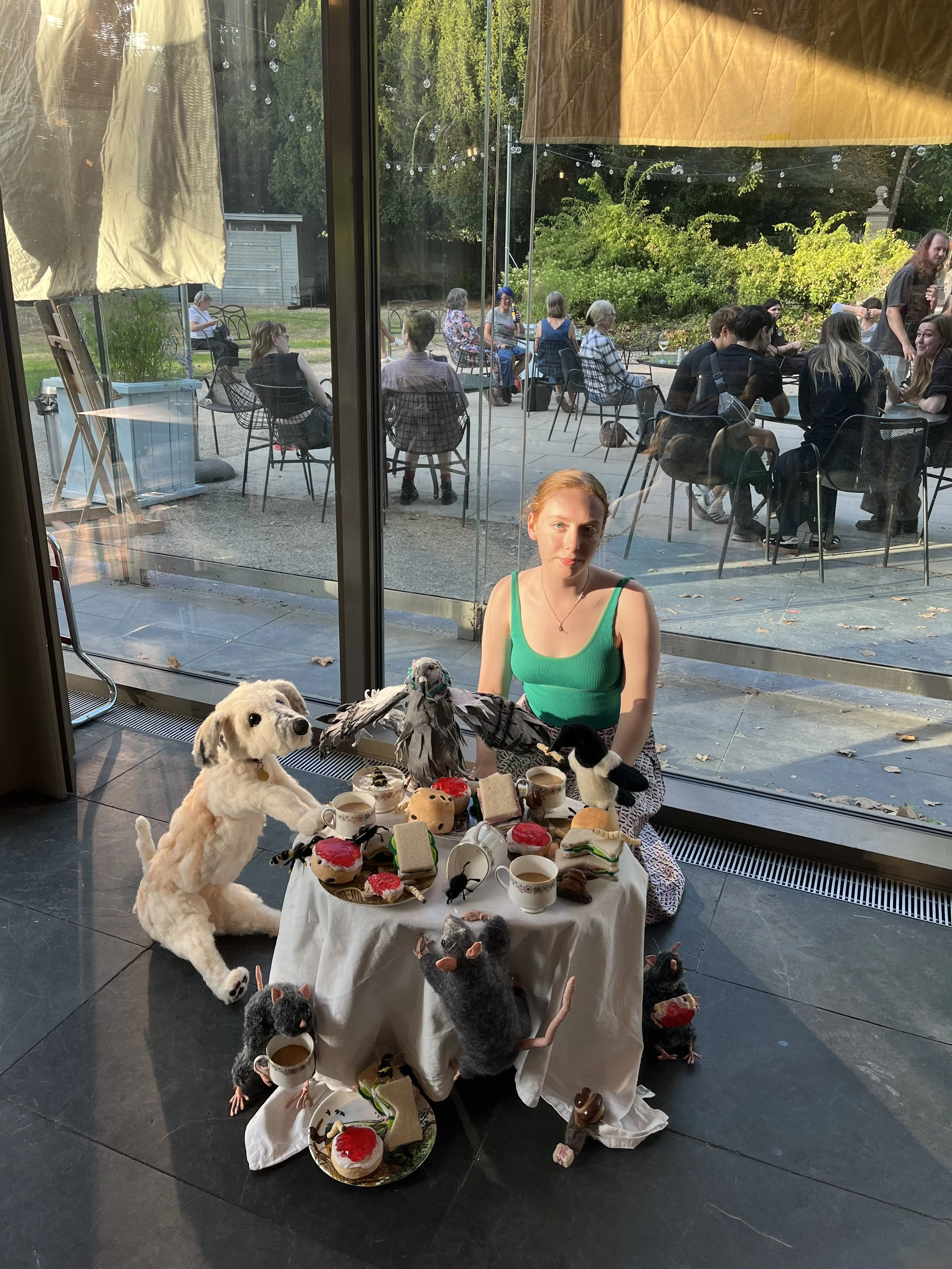 The Creatures Who Came for Tea is an installation featuring felt and sewn animals inspired by Beatrix Potter’s whimsical creatures, gathered around a ceramic tea set. The work nods to my roots in Stoke-on-Trent, a city known for its pottery industry, and explores themes of class, industrial heritage, and the divide between working-class and upper-class experiences.